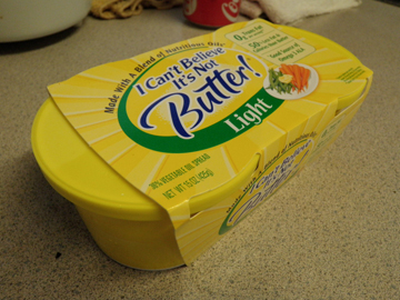 「これがバターじゃぁないなんて信じられない!」という意味の英語の商品名の柔らかいバターもどき・・・。